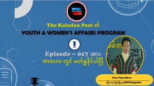 မေးမြန်းသူ – အားလုံးပဲ မင်္ဂလာပါရှင်။ The Kaladan Post ရဲ့ Youth and Women’s Affairs Programme ကနေပြီးတော့ ပြန်လည်ကြိုဆိုလိုက်ပါတယ်။ ဒီတစ်ပတ်မှာတော့ CDF Kanpetlet ရဲ့ ပြောရေးဆိုခွင့်ရှိသူ ဆရာပီတာသန်းရွှေနဲ့ တော်လှန်ရေးအပေါ်မှာ သဘော ထားအမြင်တွေကို တွေ့ဆုံမေးမြန်းသွားမှာပဲဖြစ်ပါတယ်။ ကျွန်မကတော့ RAINပါ။ ဆိုတော့ ကျွန်မတို့ရဲ့ ဒီနေ့ ဒီ interview ကို လက်ခံပြီးတော့မှ မေးမြန်းဆွေးနွေးခွင့်ပေးတဲ့အတွက် အများကြီးကျေးဇူးတင်ပါတယ်။